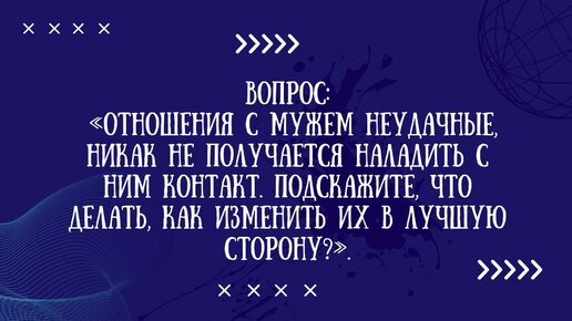 Вопрос: «Отношения с мужем неудачные, никак не получается наладить с ним контакт. Подскажите, что делать, как изменить их в лучшую сторону?». Для этого нужно понимать важный принцип изменения отношений. Например, вы хотите достичь какой-то цели, написали план, продумали то, что будете делать, и выработали стратегию и систему достижения своей цели. Начинаете делать, а результат оказывается другой, какого вы не ожидали, неудачный. Реальность оказалась другая. Кто-то начнёт ругать мир, что он такой...