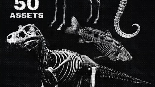 Bitmap Skeleton Shapes Pack - вектор Формат: PNG Размер: 65 MB Состав: 🦖 ● 50+ элементов Описание: 🦖 Антуражные скелеты животных для разнообразных дизайн-проектов. Скачать - тык Предложка - тык...