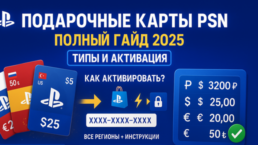 Купили код PSN, а он не активируется? Или не знаете, какой номинал выбрать для турецкого аккаунта? Подарочные карты PlayStation — не просто коды. У каждого региона свои особенности, номиналы и правила активации. Карты PSN по лучшим ценам — это только полдела. Важно выбрать правильный тип карты и активировать без ошибок. Разберем все виды PSN карт и научимся их правильно использовать. Каждая подарочная карта PSN содержит: Правильный формат: XXXX-XXXX-XXXX Мошенники часто продают: Валюта: рубли (₽)...