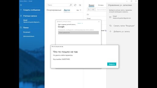 Добрый день! Если у вас возникла ошибка при добавлении учетной записи почты в Windows, попробуйте следующий метод, который мне помог. Шаги решения проблемы Шаг 1: Открытие Почты и Календаря Откройте Microsoft Word и в поле поиска введите «Почты и календарь». Запустите это приложение. Шаг 2: Добавление учетной записи Вначале добавьте учетную запись, которую хотите использовать. Убедитесь, что почта закрыта, и нажмите кнопку «Обновить». После обновления необходимо перезапустить ПК. Шаг 3: Проверка учетной записи После перезагрузки снова откройте почту и выберите нужную учетную запись...