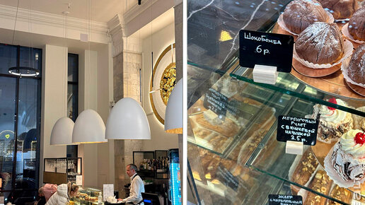 В ГУМе после ремонта изменения. Теперь на первом этаже появилась кофейня. Посмотрели, что там продается и сколько стоит. Изменения в ГУМе видны уже с первого этажа. Теперь справа у входа, где раньше был отдел с косметикой, теперь продается кожгалантерея, за ней находится гастроном и кофейня. Кофейня выглядит приятно, в ней стильная мебель. Несколько столиков стоит вдоль окна, из которого открывается вид на проспект Независимости и Mak...