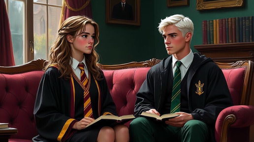 Комната старост на пятом этаже дышала покоем, которого так не хватало в остальном Хогвартсе. Ветер за окном завывал свою осеннюю симфонию, а в камине с тихим потрескиванием плясали язычки пламени. Гермиона Грейнджер, уткнувшись носом в стопку пергаментов по теории трансфигурации, пыталась выкроить часок перед ужином на подготовку. Идиллия длилась ровно до того момента, как дверь с тихим скрипом открылась, впуская внутрь холодный воздух коридора и Драко Малфоя. Он вошел так, будто комната принадлежала лично ему: с высоко поднятым подбородком, с небрежной грацией, от которой закипала кровь...