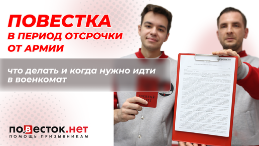 Повестка в период отсрочки от армии: что делать и когда нужно идти в военкомат Многих призывников волнует вопрос: может ли военкомат вызвать повесткой, если у тебя есть законная отсрочка от армии? И главное — нужно ли по ней идти? Как юристы, мы часто сталкиваемся с такими ситуациями, поэтому объясняем всё простыми словами. Почему вообще приходит повестка, если у вас отсрочка Военкомат может направить повестку не только для призыва на службу. Есть несколько причин: 1️⃣ Призыв на срочную службу. Это стандартный случай — когда гражданина хотят отправить служить...