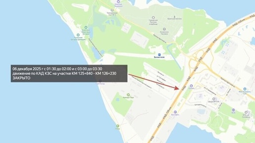 Движение транспорта на кольцах КАД остановят в Петербурге 6 декабря
