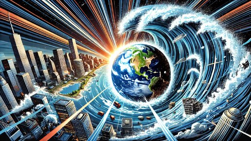 Представьте: наша планета вдруг берёт и резко останавливается. Всего на одну-единственную секунду. Кажется, что секунда — это так мало, будто мы даже не успеем моргнуть. Но для Земли это было бы катастрофой, которую сложно вообразить. Сегодня наша планета вращается вокруг своей оси со скоростью примерно 1670 километров в час на экваторе. Мы этого не чувствуем, потому что всё — воздух, вода, люди, города движется вместе с Землёй. Но стоит планете замедлиться, и всё, что не приколочено к земле, продолжит лететь вперёд с той же скоростью...