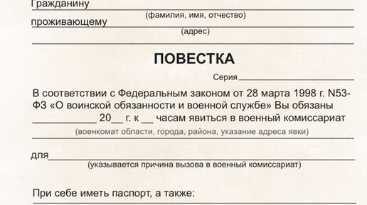 Повестка в военкомат: что нужно знать в 2021 году? Прежде чем приступить к изучению особенностей, связанных с повесткой в военкомат, давайте для начала рассмотрим основные положения, которые должен знать каждый. Образец повестки в военкомат выглядит следующим образом: В повестке должны быть указаны: Повестка — это официальное письменное извещение с вызовом в военный комиссариат. Она вручается всем лицам мужского пола в возрасте от 16 до 27 лет. Данный документ имеет свои особенности: он...