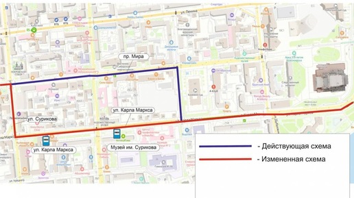 В Красноярске из-за перекрытия ул. 9 января, где идёт ремонт проезжей части, изменится схема движения автобуса № 85, сообщили в Дептрансе города. Общественный транспорт в историческом центре будет сворачивать с пр. Мира на ул. Карла Маркса через ул. Сурикова, а не через ул...