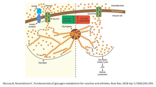 В организме человека углеводы сохраняются в виде гликогена в мышцах и печени - это, хоть и небольшой, но энергетический резерв. Гликоген печени используется для поддержания уровня глюкозы в крови, а гликоген мышц служит источником энергии для мышечных сокращений. Было показано, что мышечный гликоген является важным фактором, определяющим выносливость при физических нагрузках. Также было отмечено, что несколько дней манипуляций с диетой и физическими упражнениями привели к «суперкомпенсации» уровня...