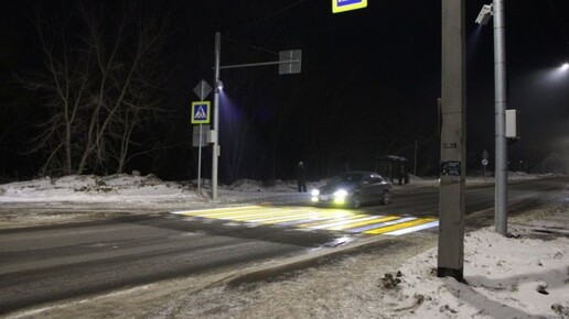 На опору смонтировали специальный проектор. Когда темнеет или погода ухудшается, он "рисует" на дороге яркую проекционную "зебру" В Рубцовске специалисты Юго-Западного ДСУ установили проекционный пешеходный переход на базе комплекса "Аврора V". В Алтайском крае это первое подобное устройство, сообщает пресс-служба управления. Новинку можно увидеть на автодороге Н‑3931. Эта световая разметка хорошо видна даже на снегу или мокром асфальте, позволяя водителям различать переход за 150-200 метров, что существенно превышает дистанцию обнаружения стандартной разметки...