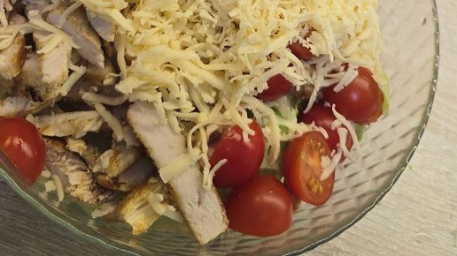 Когда у меня есть свободное время, я готовлю. Люблю это делать, на кухне я отдыхаю❤️ Как бы это странно не звучало. "Недоцезарь" Я тебя слепила из того что было🤣 Спонтанный салат. Стояла в магазине в очереди и вспомнила, что у меня лежит жареная грудка которая не очень удалась (суховата)...