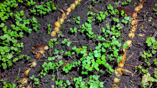 «Ленивый» мостовой способ посадки севка под зиму. Весной мощные перья и ядрёная зелень
