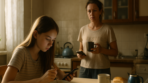 Утро, которое началось с упрёка Будильник уже давно отзвенел, но в квартире всё ещё стояла приятная сонная тишина. На кухне лениво бурлил чайник, солнечное пятно осторожно перелезало с подоконника на стол, пахло свежим хлебом и тем самым магазинным сыром, который Лера называла «детским». Марина бросила быстрый взгляд на часы и чуть поморщилась: опаздывают. Потом — на дочь. Лера сидела за столом, согнувшись над телефоном, как над потайной книгой. Одна рука держала ложку с хлопьями, другая привычно листала ленту...