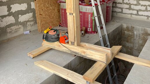 Хитрый товарищ придумал приспобление, чтобы одному монтировать листы OSB к потолку