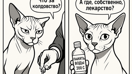 Пиявки, заклинания, сахарные шарики — всё, чтобы ваш кот почувствовал себя пациентом средневекового ветеринара. Разбираемся, чем гомеопатия похожа на магию. Обычно я спокойно реагирую на комментарии. Даже на те, где пишут, что мои коты — это замена детям, что я «сошёл с ума» или что Доче холодно (не холодно, у неё свой плед).