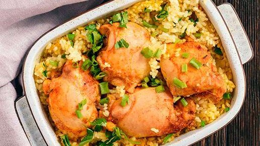 • растительное и сливочное масло. Последовательность работы 1. Нужно взять кусочки курицы, лучше, если это будут бедра, и отварить в подсоленной воде. Соли должно быть в меру. 2. Рис промыть, немного просушить и слегка обжарить на растительном масле в течение 10 минут до прозрачности. 3. Взять посуду для духовки, лучше глиняную...