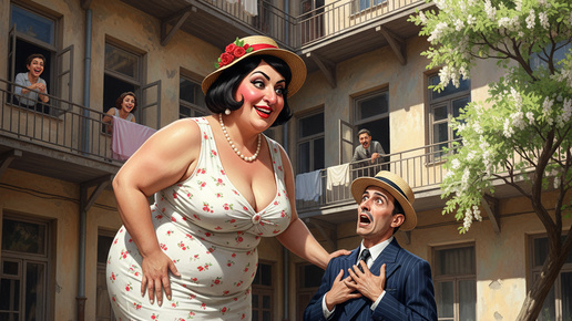 Одесский дворик. На улицу вышла колоритная дама Циля Бронштейн и увидев одиноко стоящего на улице Фиму Каца посмотрела на него так, что у Фимы от неожиданности прихватило сердце, отчего он припал на правое колено. Увидев картину маслом, Циля пошла на абордаж: - Фима, ви такой рыцарь, шо боже мой! Моё сэрдце тает, как мороженая скумбриЯ на Привозе, когда я смотрела за ваше геройство! Я плачу из своих глаз слезами восхищения! Фима, тока не пытайтесь обнять мене всю за один раз, мене много! Зато таки...