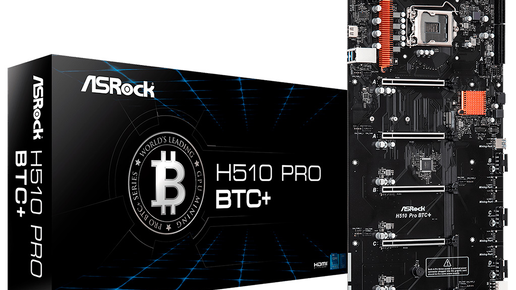 Для добытчиков криптовалют компания ASRock выпустила материнскую плату H510 Pro BTC+. На текстолите нетипичного размера 501 х 224 мм распаяны 6 полноформатных слотов PCI-E 3.0 x16. Что правда, электрически в режиме x16 из них работает только самый верхний, а все прочие довольствуются 1 линией PCI-E. Помимо впечатляющего количества слотов для видеокарт, ASRock H510 Pro BTC+ получила один слот под оперативную память DIMM DDR4, один порт SATA 6 Гбит/с, один M.2. Плата поддерживает процессоры Intel Core 10- и 11-го поколений...