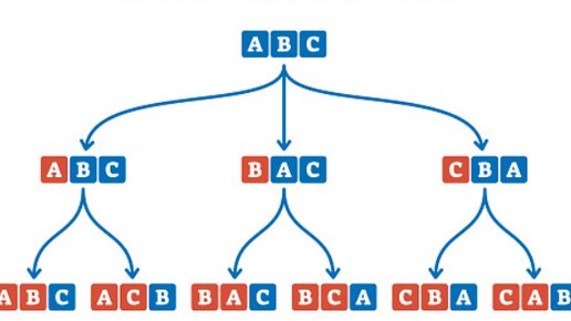Перестановки - это упорядоченные наборы элементов. Допустим, у нас есть буквы A, B и C. Какие различные слова мы можем составить, используя эти буквы? Посмотрите: