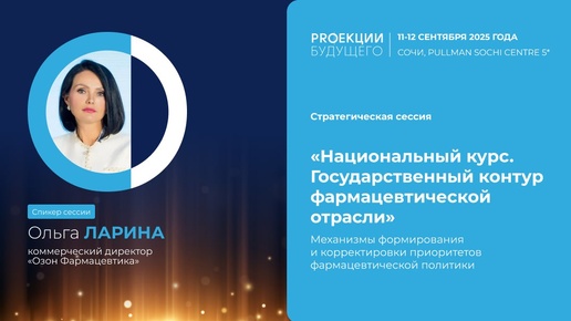 Знакомьтесь со следующим спикером PROекций Будущего: 🔹Ольга Ларина, коммерческий директор «Озон Фармацевтика», спикер стратегической сессии «Национальный курс. Государственный контур фармацевтической отрасли» Дата и время сессии: 11 сентября 2025, 11:15 📍г...