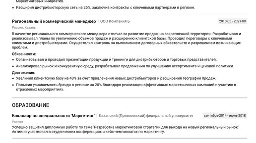 Пример резюме регионального коммерческого менеджера 2025 - Как составить