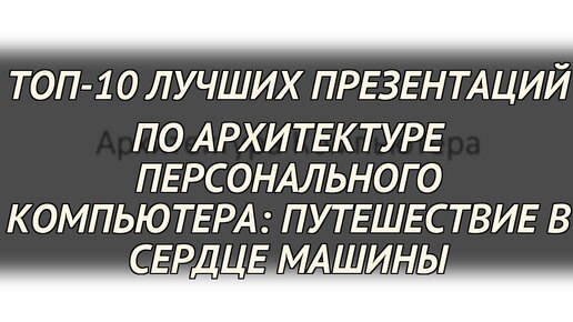ТОП-10 лучших презентаций по архитектуре персонального компьютера: Путешествие в сердце машины