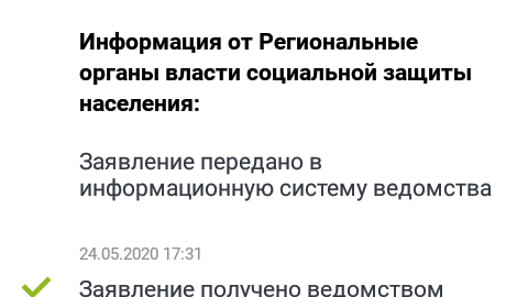 Всем привет! Сегодня, 26 июня, этот день называли крайним сроком,когда все получат ответ и, в соответствии с решением, перевод или ничего. Лично у меня ничего не поменялось Как прописано, в случае отказа придёт уведомление, сроком не превышающий 1 рабочего дня. Из этого можно сделать вывод. Сегодня, абсолютно все, кто подал заявление в мае, начале июня, до 6 числа, сегодня получат деньги или отказ...