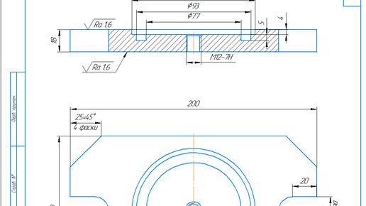 Чертеж основания кондуктора для сверления 8 отверстий на станке 2М55