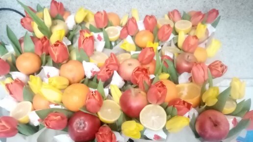 Быстро и красиво-цветочно-конфетно-фруктовый букет "на коленке"