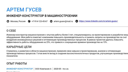 Пример резюме инженера-конструктора машиностроения 2025