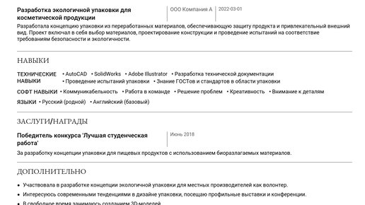 Пример резюме конструктора упаковки 2025