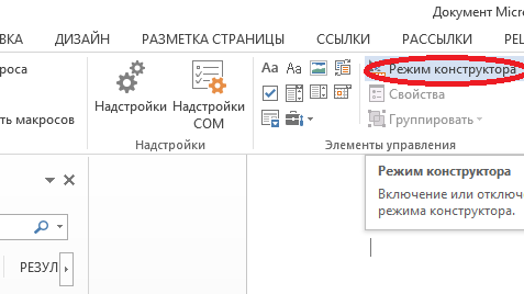 Использование "режима Конструктор" в WORD