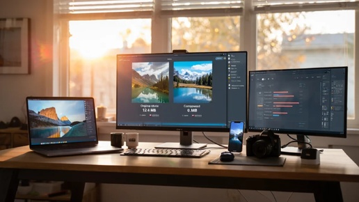 Сжать фото, видео, документ, PDF онлайн бесплатно Последние пару месяцев чаты разработчиков, дизайнеров и SMM-щиков буквально гудят про один старенький, но внезапно снова выстреливший сервис. Называется ImageSmaller, существует с 2016 года, а популярность набрал только сейчас — видимо, потому что все наконец устали от тяжёлых фоток, которые грузятся вечность. Короче, если коротко: кидаешь картинку — через пару секунд получаешь её же, но в разы легче. И всё это прямо в браузере, без регистрации, без водяных знаков и без установки каких-то сомнительных программ...