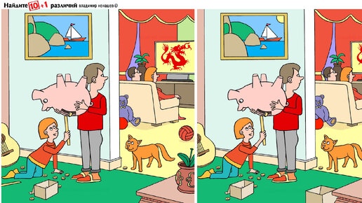 10+1 различие про копилку и кота. Тест на внимательность и память. Год дракона приносит деньги!