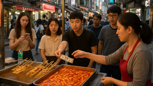 Когда говорят о Корее, первое, что приходит на ум — это K-pop, дорамы и идеальная кожа. Но есть ещё одна вещь, без которой невозможно понять Корею — уличная еда. Вкусная, ароматная, недорогая и... не всегда острая 🔥 Да! В Корее всё продумано так, чтобы перекусить можно было в любое время суток и в любом районе. За 1 доллар (примерно 1 300 вон) вы можете купить порцию ттокпокки или горячий рыбный одэн.