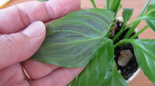 Коричневые пятна на листьях спатифиллума появляются при неправильном уходе за растением или во время развития у него какого-либо грибкового заболевания. Такие поражения приводят к ухудшению внешнего вида, нарушают цикл роста и развития цветка, замедляют его раскрытие, а иногда сигнализируют о возможной гибели этого представителя южноамериканской флоры. Если появились темные пятна, что делать, можно узнать у опытного садовода. Источник: http://vseolady.ru/korichnevye-pyatna-na-listyax-spatifilluma...