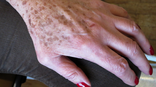 Коричневые пятна на коже лица, кистей, спины после 40-50 лет. Старческое лентиго