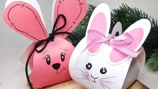 Всем привет! Сегодня на моем канале вышел мастер класс по изготовлению коробочек для сладких призентов..... Делаются они легко и быстро, а положить в них можно все что угодно... мандаринку, шоколадное яйцо или несколько вкусных конфеток. Согласитесь, ведь ребенку будет приятней получить гостинчик в забавной упаковочке чем в простом целофановом пакете... Предлагаю присоединиться к процессу и сделать вместе со мной милые коробочки-зайчики. Для создания первого зайчика нам понадобиться плотный картон белого и розового цвета, маркеры и небольшой отрезок узкой ленточки...