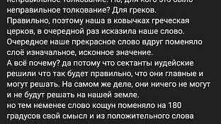Кощунник - это толкователь, «кощунствовать» - т.е. объяснять, разъяснять, растолковывать. Кому-то это не нравилось с приходом христианства, поэтому слово «кощуны» (пояснение, разъяснение) превратили в «кощунство», т.е. в отрицательную форму, как неправильное толкование. Но, для кого это было неправильное толкование? Для греков. Правильно, поэтому "наша" в кавычках, греческая церковь, в очередной раз исказила наше РОДное слово. Очередное наше прекрасное слово вдруг поменяло слоё изначальное, иЗконное значение...