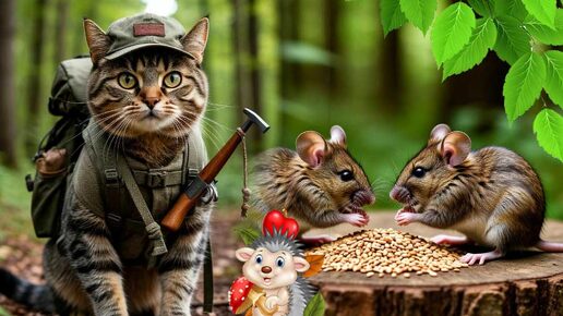Наш кот Василий — не просто пушистый комочек, спящий на диване. Нет! Он — отважный исследователь, покоритель вершин (в виде штор) и охотник на страшных монстров (хозяйские тапки). Но однажды ему стало скучно, и он решил отправиться на настоящую охоту. В дремучий лес! Ну, или в ближайший парк. Для кота это одно и то же. Сборы и проводы Василий готовился к экспедиции как настоящий профессионал. С вечера он стащил у хозяина: Утром, когда вся семья ещё спала, наш герой гордо прошмыгнул из квартиры через приоткрытую форточку...