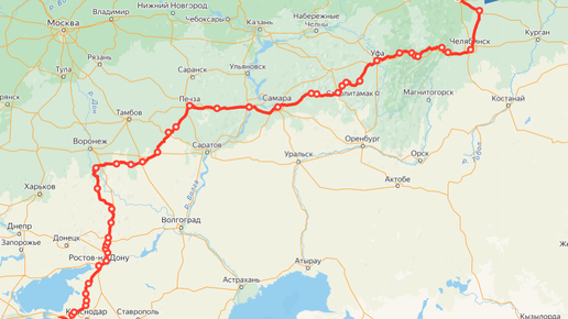 Наверное, можно было бы его пустить на Челябинск по более западному маршруту, а не через Каменск-Уральский, но сильно это погоды бы не сделало. Ну вот так у нас расположились города на Урале и железные дороги, которые их соединяют. Наверное, можно было бы пустить его иным маршрутом (например, через Казань). Ведь в общем-то между Челябинском и Анапой есть приличное количество вариантов, как добраться. Но пустили вот так. Наверное, он закрывает собой транспортную потребность в перевозках между Екатеринбургом и Челябинском...