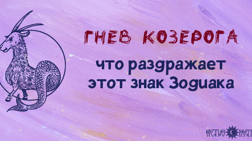Гнев Козерога чаще всего вызван людьми, которые игнорируют его мнение и не воспринимают его всерьез. Люди, рожденные под знаком Козерога, всегда стремятся поступать правильно и могут разозлиться, если кто-то им противостоит. Козерог придает большое значение своему статусу и своим суждениям, поэтому, когда люди подвергают сомнению его достижения, это наверняка вызовет его гнев. ЧТО РАЗДРАЖАЕТ КОЗЕРОГА Козерог всегда серьезен, сдержан и последователен. Он крайне редко рассказывает кому-то о своих эмоциях, и в свою очередь терпеть не может когда кто-то навязывается ему...