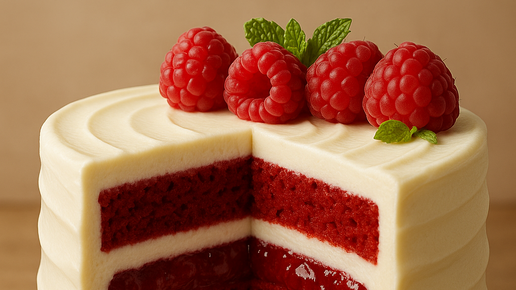 Бисквит «Красный бархат» с малиновым желе и кремом-чиз Ингредиенты: Бисквит «Красный бархат» (на 3 коржа 16 см): Малиновое желе (на 2 прослойки 14 см): Крем-чиз на сливках (на 2 прослойки 16 см): Крем-чиз на масле для выравнивания (на торт из 3 коржей...