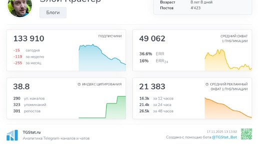 Продолжаем анализировать тг-каналы при помощи нейросетей. Рассмотрим канал Злой Крастер Дани Крастера. Психологический портрет автора