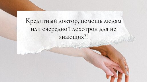 Хотелось бы поделиться с Вами занимательной историей об услуге «Кредитный доктор» или новый способ банков, обдурить людей. Ко мне за помощью обратилась женщина, которая находясь в трудной жизненной ситуации, попалась на маркетинговый ход и хорошую рекламную компанию банков. Сразу поясню, что интерес к данной услуге был проявлен, поскольку денежных средств не было даже на еду, на руках ребенок, а сама женщина находилась на больничном, в связи с серьезной травмой. И да, у нее испорчена кредитная история, долги на момент обращения уже были погашены...