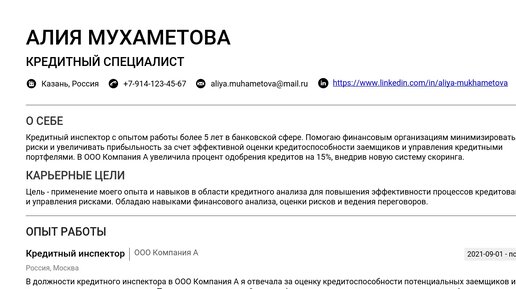 Ищете пример резюме кредитного инспектора, который работает? Изучив наши готовые примеры, вы сможете составить действительно эффективное резюме, которое поможет получить желаемую работу. 🚀 Здесь собрана полная информация о том, как составить резюме, соответствующее требованиям работодателей. Мы подготовили готовые примеры для начинающих и опытных специалистов, а также подробные пошаговые инструкции по каждому ключевому разделу, включая: Вы узнаете, как грамотно адаптировать резюме под конкретные вакансии, чтобы выделиться среди других кандидатов...