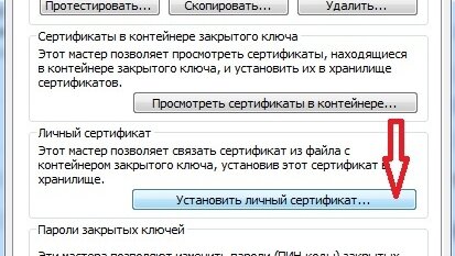 Установить полученные сертификаты можно через CSP КриптоПро, на вкладке "Сервис" нажать "Установить личный сертификат". Далее выбрать сертификат, который необходимо установить.