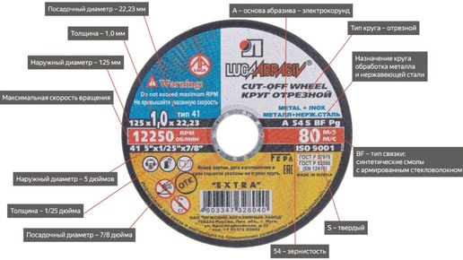 Отрезной круг — это инструмент, который используется для резки металла, камня, бетона. В этой статье мы рассмотрим основные аспекты выбора отрезных кругов, чтобы вы могли сделать осознанный выбор. На этикетке отрезного круга указаны его внешний диаметр и посадочный диаметр. Посадочный обычно составляет 22,2 мм. Внешний диаметр должен соответствовать классу вашей угловой шлифовальной машины, например, 115, 125, 150, 180 или 230 мм. Не используйте отрезной круг большего диаметра, чем разрешено для вашей УШМ — это опасно...