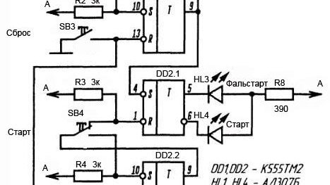 В предыдущей части цикла мы рассмотрели переключатели, собранные на цифровых микросхемах серий 155, 133, 555 и 1533. Сегодня я хочу вас познакомить с электронной игрой «Кто быстрее». Она интересна в первую очередь построением схемы, благодаря которой при помощи всего двух микросхем реализован достаточно сложный алгоритм. Итак, начнем. Что это за игра Прибор позволяет провести соревнование в скорости реакции между двумя игроками. Запускает игру и контролирует соблюдение правил арбитр. Суть самой игры состоит в следующем...
