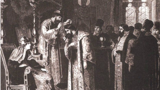 После смерти Ивана IV царский и великокняжеский престол унаследовал его сын Федор Иванович. Старший сын Ивана IV Иван Иванович, бывший первоначально наследником престола, умер в 1581 г. Хотя было заявлено, что старший царевич, всюду и везде сопровождавший своего отца, умер от болезни, ходили упорные слухи, что легко впадающий в ярость грозный царь в ссоре ударил сына в голову жезлом, и от этой раны Иван Иванович и умер. Доказательств этим слухам, хотя и очень стойким, однако, и поныне нет. Федор Иванович был полной противоположностью своему наводившему на всех ужас отцу...