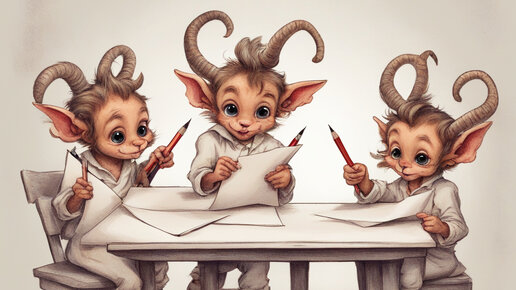 Иллюстрирую скороговорку про чумазеньких чертят. Помните, с чего "Лигурия" начинается? "В четверг четвертого числа в четыре с четвертью часа..." и дальше пошло-поехало уже про регулировщика из солнечной Лигурии. Но на самом деле это начало совсем другой скороговорки: В четверг четвёртого числа в четыре с четвертью часа четыре чёрненьких чумазеньких чертёнка чертили чёрными чернилами чертёж чрезвычайно чисто. Еще в середине сентября прошлого года, когда я только-только начала увлекаться нейросетями, пробовала иллюстрировать эту скороговорку...